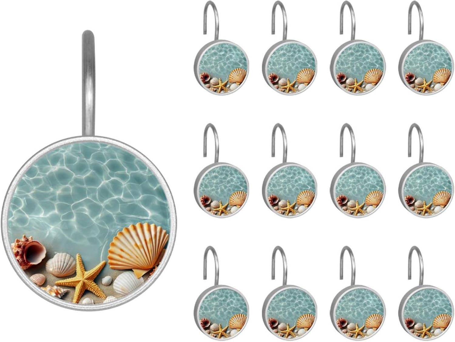 Enhance your bathroom and living space decor with this set of 12 stainless steel shower curtain hooks.Designed to complement any bathroom accessories collection, these shower curtain rings are not only rustproof but also offer a versatile and decorative solution for your home. The high-quality construction using resin, glass, and stainless steel guarantees a long-lasting performance while maintaining an elegant look.Suitable for a range of curtain rods, these easy-to-install hooks accommodate rods between 0.3 inches and 1.1 inches in diameter, making them a perfect fit for any setting.With minimal maintenance required, they are the ideal choice for those seeking style and functionality in bathroom decor.