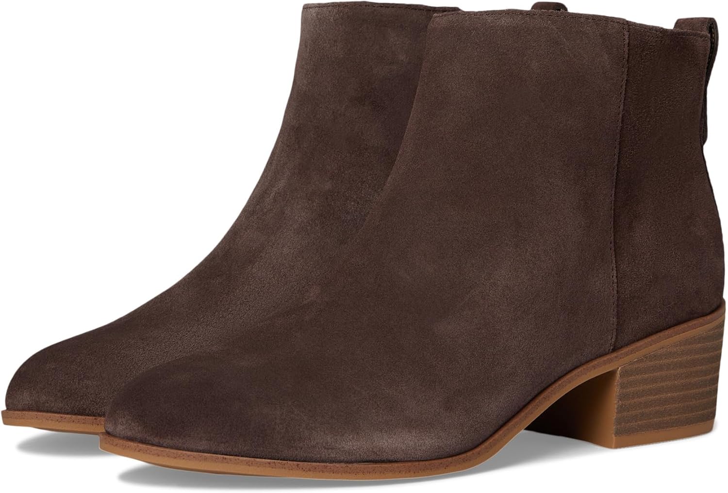 Women’s heeled boots with a bold block heel and feel-good comfort. SUSTAINABLY CRAFTED: Linings and topcloth partially made from recycled plastic bottles; partially recycled toe box and heel counter. MATERIALS: Suede or waxy leather upper. By purchasing this product, you are supporting responsible leather manufacturing through the Leather Working Group. FIT: Side zipper and back pull tab for easy on/off. FEELS: Anti-microbial, anti-odor Insole Technology with cushioning, comfort, & support. MOVEMENT: Lightweight, flexible construction moves with you. STYLE: Ankle boots for women with round toe, back pull tab, and 2 inch stacked heel and TPR with faux cru outsole. CONSCIOUSLY PACKAGED: This style is shipped in an environmentally preferred 1-piece box made with primarily recycled materials that can be recycled & soy-based inks. Meet the comfiest boots on the block: walking shoes for women for work, weekend, or wherever you’re headed.