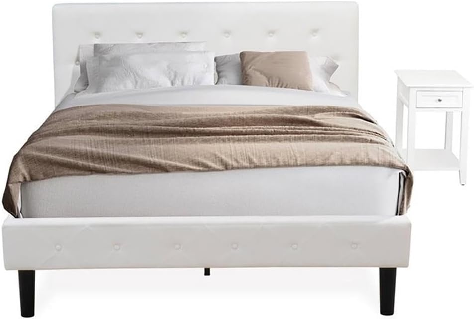 EAST WEST FURNITURE - NL19Q-2DE05 - 3 PIECE QUEEN BEDROOM SETDiscover the pinnacle of cutting-edge design and forward-looking vision with this captivating queen bed set. Enhance the charm of your bedroom with a dash of timeless allure through this exquisite queen size bedroom set. The queen-size bed frame boasts a sleek Black finish perfectly complemented by White Velvet upholstery, while the White nightstands effortlessly complete the delightful color scheme. This set seamlessly integrates with any room decor, guaranteeing its enduring presence in your home. Crafted from durable wood, the set includes a queen platform bed and a compact nightstand, making it an ideal match for any bedroom decor. The bedside table features two USB fast charging ports and two outlets, offering the convenience of charging your mobile phones and other devices while also accommodating your computer or laptop. This queen size bedroom set pledges to elevate any bedroom with its premium quality, versatility, and practicality. Not only is this queen bed set aesthetically appealing, but it also requires minimal maintenance, making it an ideal choice for those mindful of their budget. Assembling the modern bed frame is a breeze, thanks to the provided step-by-step instructions and hardware packs, ensuring a hassle-free setup.MODERN BEDROOM SET FEATURES:Material: Engineered WoodModern Bed Frame Fabric: VelvetBed Frame Fabric Color: WhiteWood Bed Frame Legs Color: BlackMid Century Nightstand Top Color: WhiteWood Night Stand Legs Color: WhiteDimensions of Bed: Length: 89; Width: 65; Height: 41.30.Night Stand Dimensions: Length: 23.7; Width: 15.7; Height: 24.Include in this Package: 1 Queen Bed Frame and 2 Small Night StandNote: Mattress is not included with this Queen Size Bed Frame.