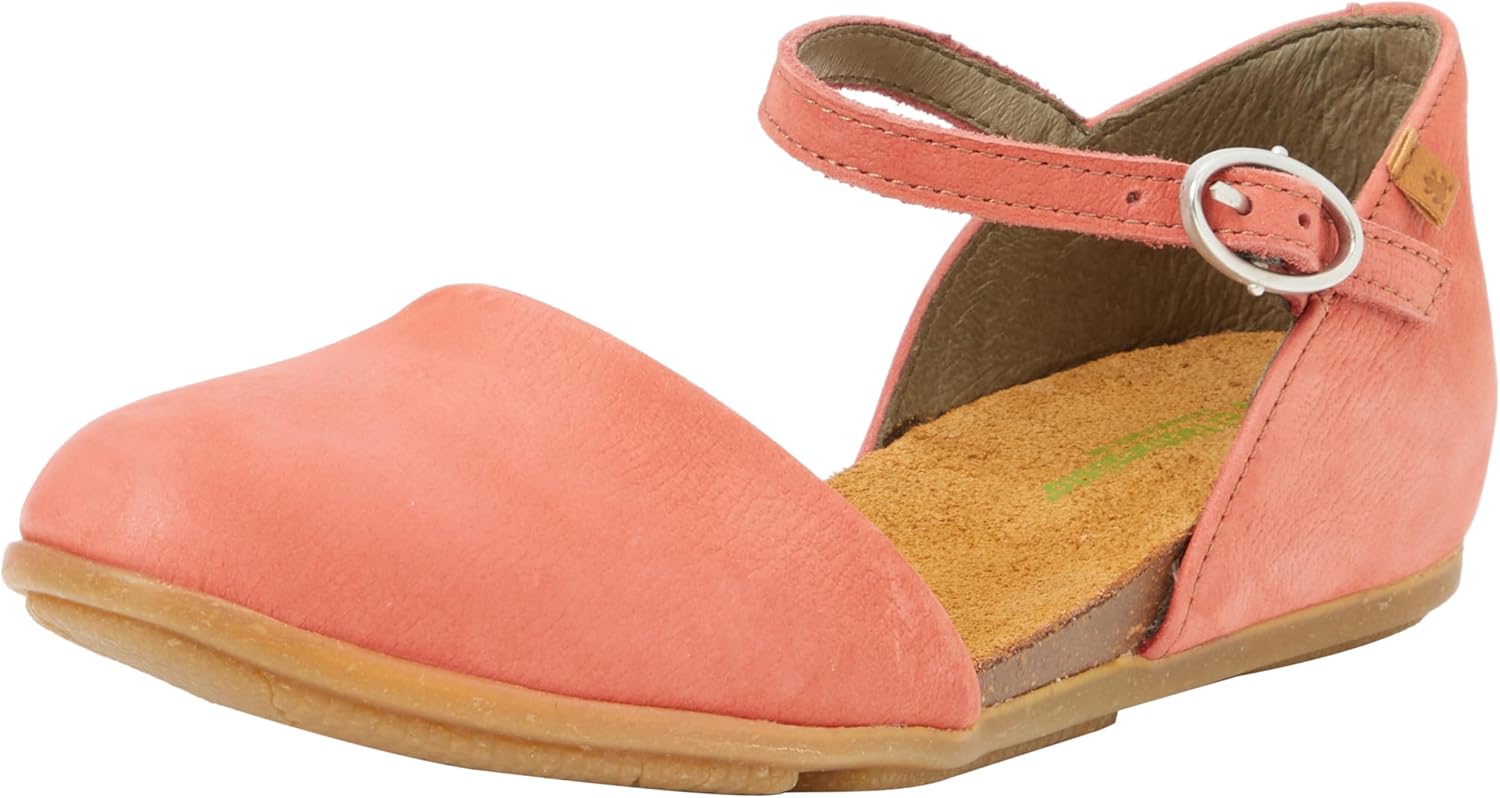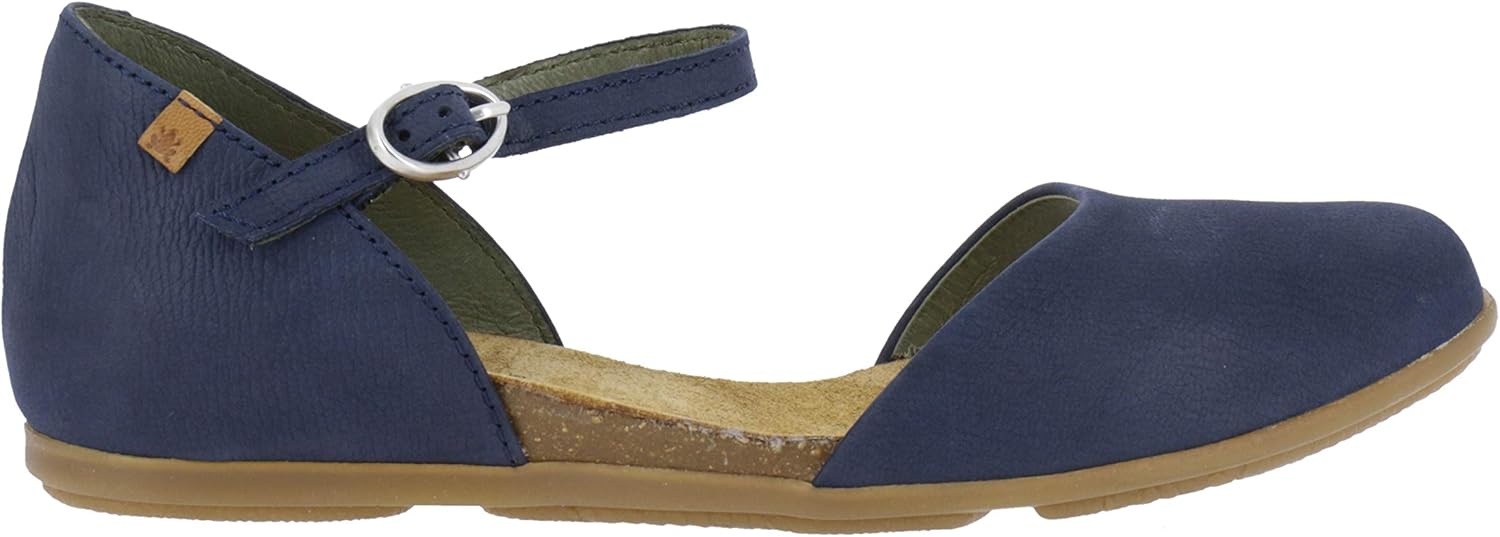 This sandal has a hidden wedge and a buckle over the instep for a better fit. Handmade in spain by skilled craftsman with years of experience. The leather is treated traditionally, with natural waxes applied manually. With this leather you will experience the vividness of the color. The insole is made from recycled materials and is antibacterial and breathable. The outsole is made of natural rubber for flexibility, durability and shock absorption. Environmentally minded El Naturalista uses recycled materials whenever possible, only recycled rubber or natural rubber, water-based glues, leathers that are vegetable tanned and packaging from recycled materials.