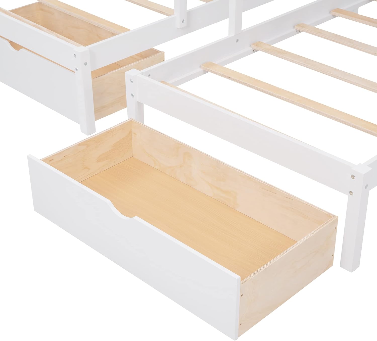 Weight & DimensionsOverall Product Dimension114.8"L*76"W*64.6"HNumber of Package3Package DimensionPlease refer to the SpecificationOverall Product Weight318lbsPackage WeightPlease refer to the SpecificationWeight CapacityUpper bed: 600 lbsLower bed: 400 lbs /400lbsRecommended age 6+Recommended Mattress ThicknessUpper bed: 6"Lower bed: 8"/8" Specifications:Product TypeFull Over Twin & Twin Triple Bunk BedSizeFull / TwinColorWhite/GrayNumber of SlatsUpper Bed:14Lower Bed:7/EachMaterialPlywood+PinewoodBox Spring RequiredNoAssembly RequiredYesCountry of OriginVietnamProduct Warranty1 Year