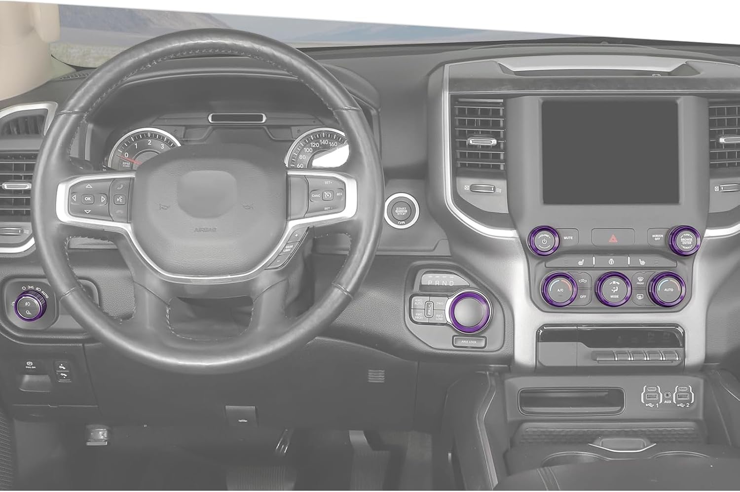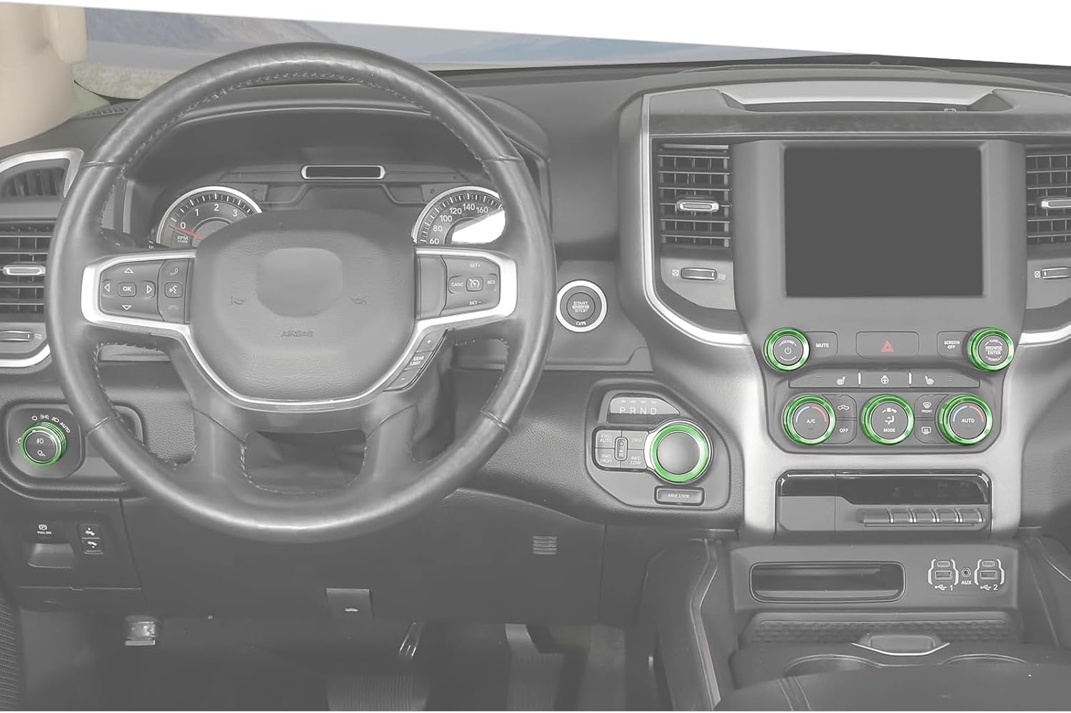 Jimen for Ram Center Console Knob Covers, 7PCS AC Air Conditioner Audio Volume Button & Headlight Switch & 4WD Shifter Knob Ring Trim Fit for Dodge Ram 2018-2025