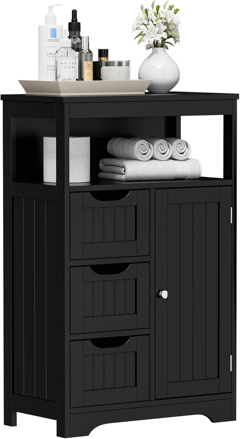 Features:-- Space saving, perfect for organizing and storing-- Suitable for bathrooms, and living rooms-- Excellent performance in terms of wet enviroment-- Modern and elegant construction, easy to install and clean-- Not only is it a piece of furniture, but it also plays a role in decorating the familySpecifications:- Color: White- Shape: Rectangular- Material: MDF+PB Boards- Storage Cabinet Dimensions: 22"D x 11.8"W x 34"H- Net Weight: 35.8LBPackage Content:-- Bathroom Storage Cabinet-- Instruction x1Note: Designed for bathroom use, ideal for storing toiletries, towels, and bathroom essentials