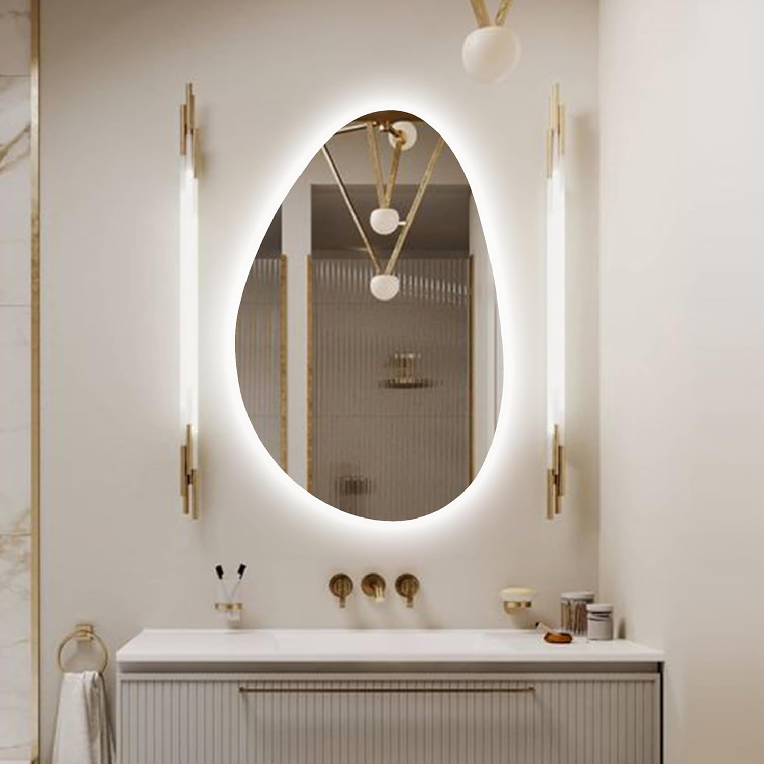 A mirror that will change the atmosphere of your whole room, house, instantly. Suitable for bathroom, living room, dressing room and entryway. *Oval Modern Frameless Wall Led Mirror,*Waterdrop Shaped Led Mirror,*Wall Hanging Asymmetrical Living Room Led Mirror, *Irregular Cloud Bathroom Led Mirror Gift ; XSmall : 20cmx30.6 cm | 7.9"x12" approximately Small : 35cmx53.5 cm | 13.8"x21" approximately Medium : 50cmx76.5 cm | 19.7"x30.1" approximately Large : 65cmx99.4 cm | 25.6"x39" approximately XLarge : 80cmx122.4 cm | 31.5"x48.2" approximately Huge : 90cmx137.7 cm | 35.4"x54.2" approximately. The Mirror ==> 4 mm Flotal-E glass mirror. This mirror is produced from nature-friendly and harmless materials and it is the best quality mirror type in the world.It is resistant to corrosion and has a long service life. The sharpness of the mirror has been eliminated thanks to the formed running-in on the edges of the mirror. The hand does not cut.It is resistant to high atmospheric humidity. It has a brighter image than other mirrors. It offers a clearer and natural image with its high light reflectivity. The product is specially packaged to avoid damage during transportation The mirror comes with hooks that are attached to the back of the mirror that can be hung on a suitable wall fixing. There are 4 different hangers for hanging on the wall both horizontally and vertically.