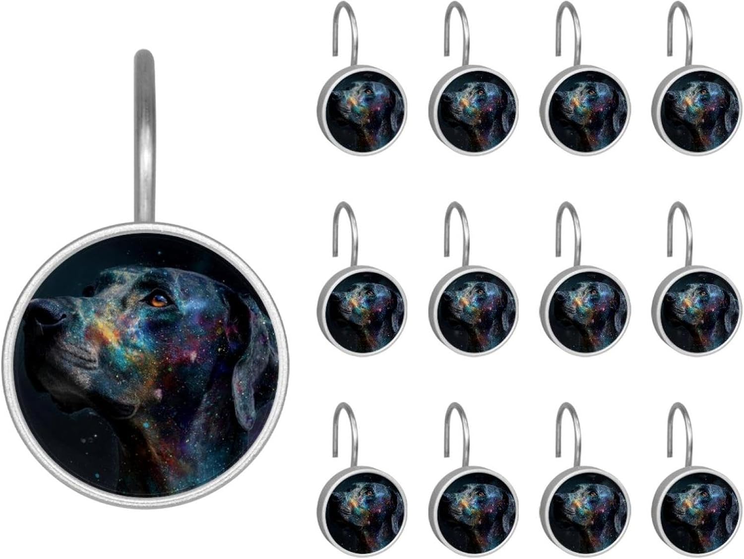 MATERIAL: glass, stainless steel. These shower curtain hooks can be decoration bathroom and will be long-lasting.12 pieces of shower curtain hooks, round crystal glass decoration, printed patterns, silver hooks to match various styles of bathroom shower curtains. SIZE: Crystal glass diameter of round shower curtain hook is 1.45x1.45in/ 3.7x3.7cm. The shower curtain hooks diameter is about 1.1in, 12 pieces shower curtain hooks are suitable for rod of 8-28mm(0.3"-1.1"). RUST RESISTANT:Shower hooks are made of stainless steel and crystal glass, which is durable, rust-proof and corrosion-resistant, it will not rust suitable for wet bathroom environment. EASY TO INSTALL:Hand the shower curtain hooks hold securely on straight or curved shower curtain rods,slid easily and smoothly. Easy to install and decorate your bathroom. BEAUTIFUL AND ELEGANT:Beautiful Love hook add charming scenery for your bathroom, baby room, bedroom, living room, and the gorgeous style is easy to match with any kinds of bathroom shower curtain. EASY GLIDE: Open and close your shower curtain quickly and easily with the Shower Hooks, easily glides on shower curtain rods and tension rods. No snagging; no effort; no hassle PACKAGE: 12 shower curtain hooks in a pack.The bathroom curtain hook has a smooth appearance and can be hung on the pole to pull it at will. Special price 12 sets to meet your needs.