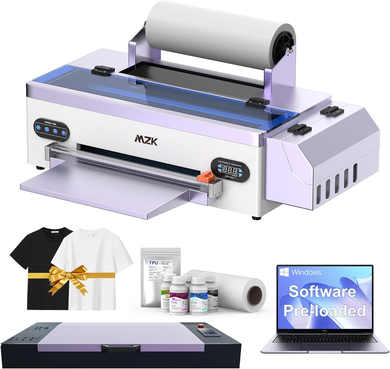 | BuiltIn Media | What's in the box:DTF Printer , 5 x 250ml five-color ink,250ml printhead moisturizing solution, 100m dtf roll Films, 500g DTF Powder, upgraded User-Friendly software, comprehensive video tutorial, and various accessories |