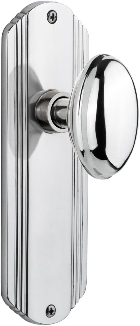 The Deco plate brings to mind old hollywood, jazz, and the great gatsby, all of which inspire a modern twist on great classics from the past. Add our homestead door knob with its curvaceous oval shape for a look to enhance any home. All Nostalgic Warehouse door knobs are mounted on a solid (not plated) forged brass base for durability and beauty.