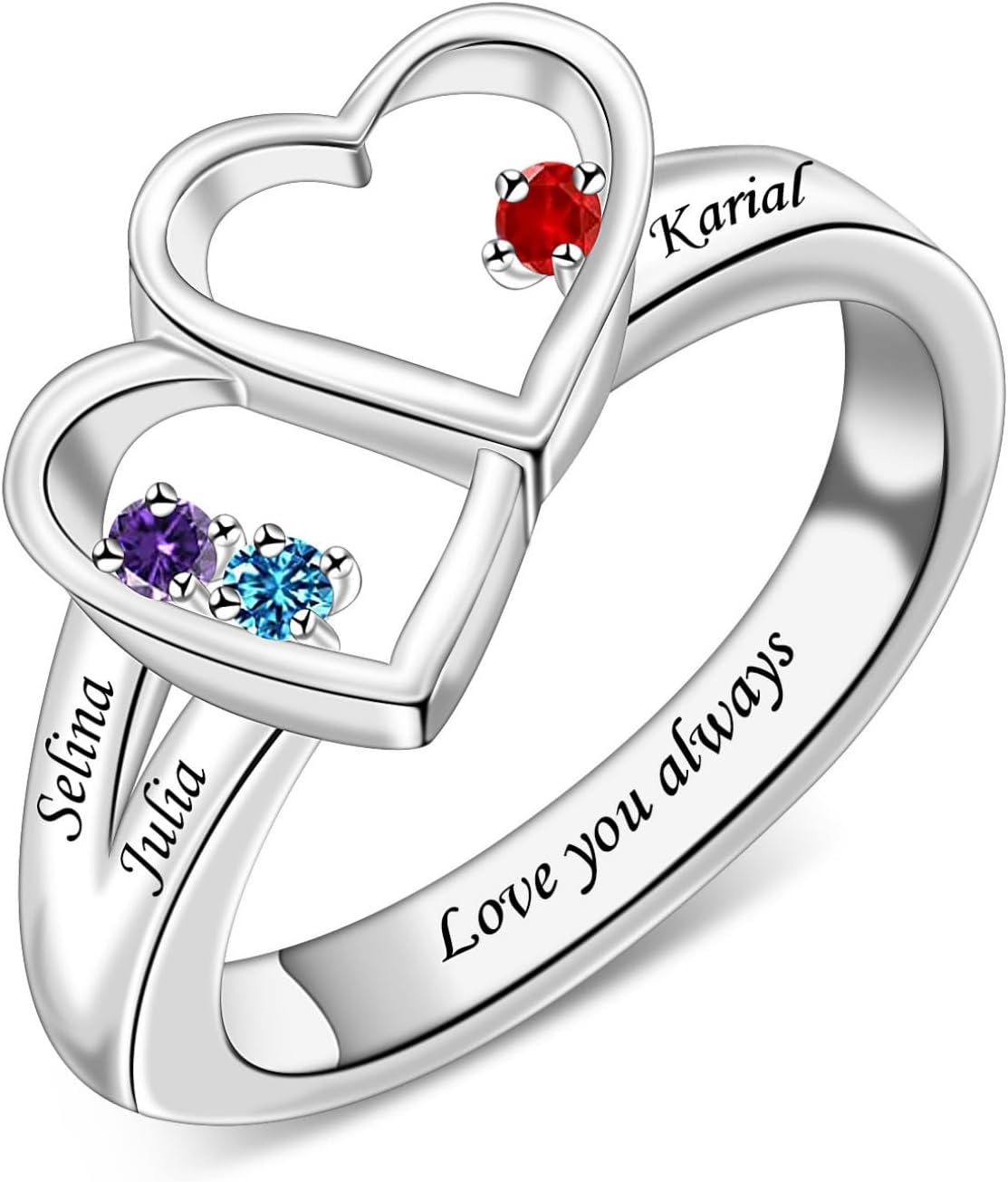 Celebrate the special women in your life with our Custom Birthstone Names Ring. This exquisite piece of jewelry features a stunning birthstone and the option to engrave a name or meaningful message, making it a uniquely personal gift. Perfect for Mother's Day, Christmas, birthdays, or any occasion, this ring is a timeless keepsake that encapsulates love and cherished memories