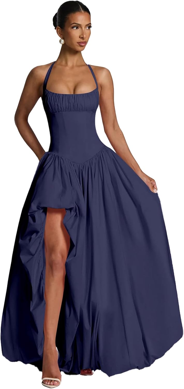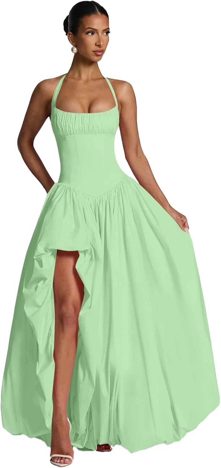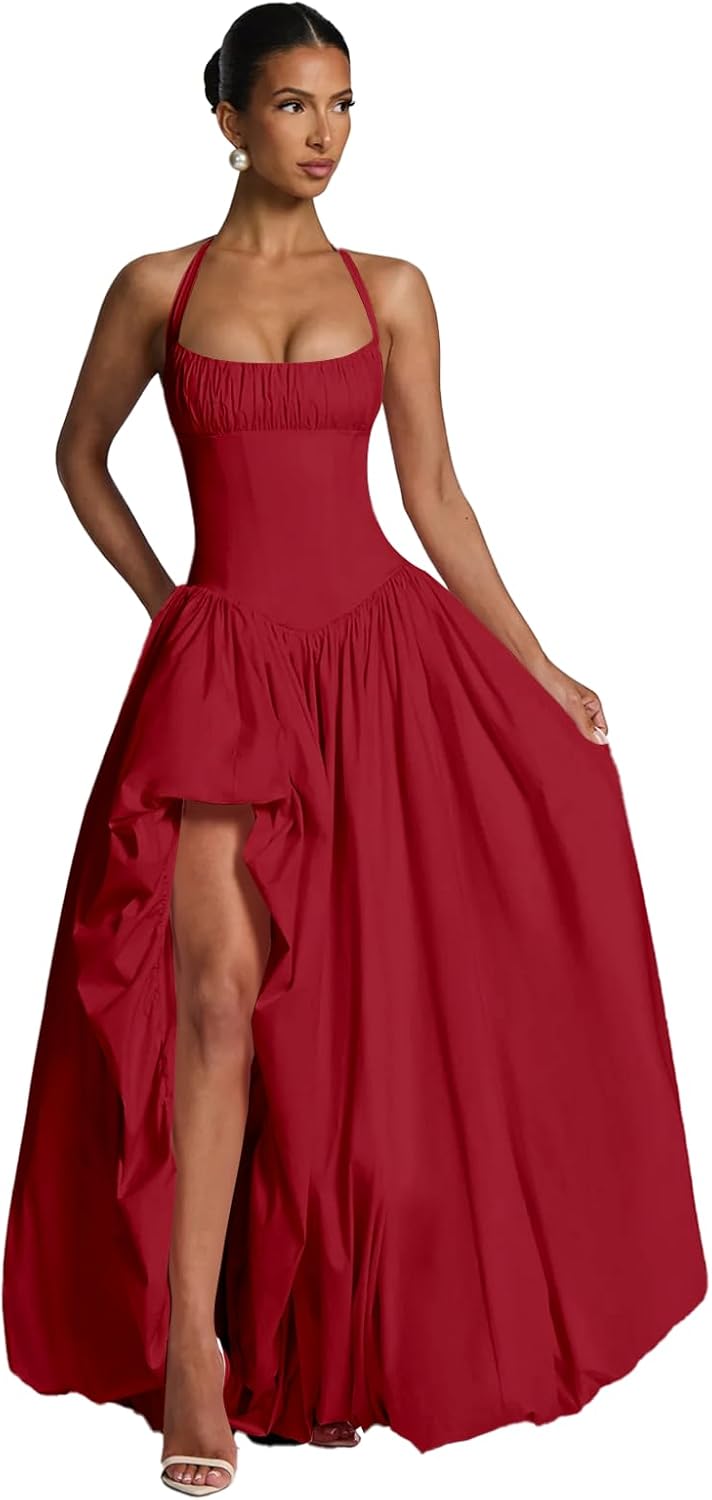 | Embellishment Feature | Halter, Lace up Back, Pleated/Ruched, Satin, Slit |
