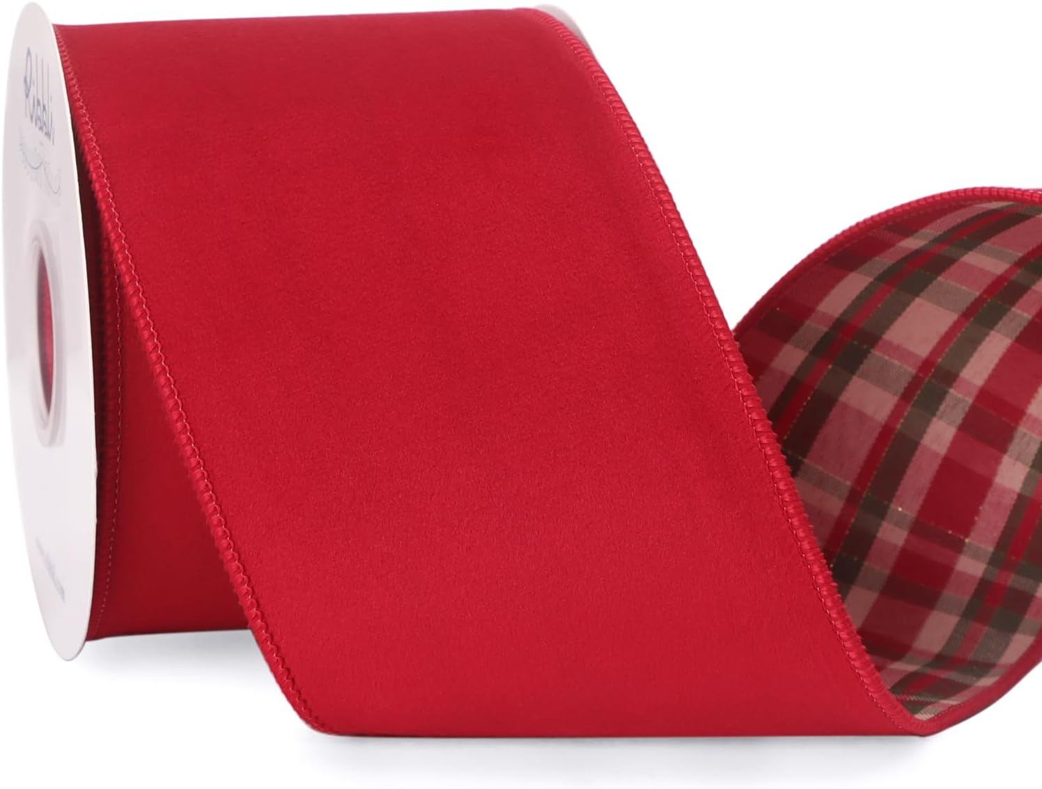 Ribbli matte velvet with plaid wired ribbon perfect for you to make DIY project: gift wrapping, big bow, wreath, Christmas tree decoration, indoor decoration, Christmas home decor, party decoration. velvet ribbons are essential for the Christmas season.
