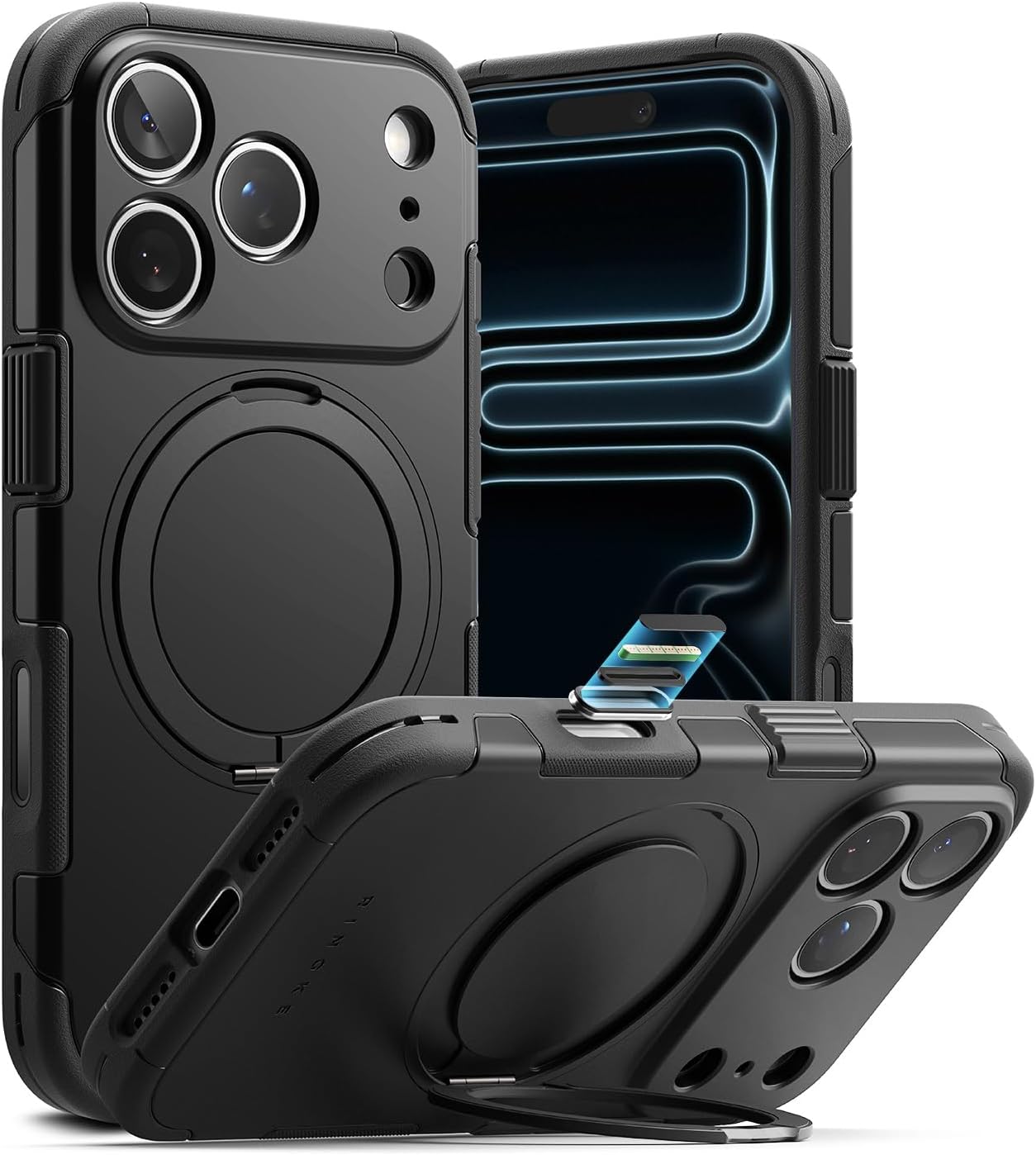 Ringke Alles Pro for iPhone 17 Pro Max Case [Compatible with MagSafe] Camera Control Capture Button Protection Powerful Magnet Shockproof Cover with 360° Rotating Kickstand - Gunmetal