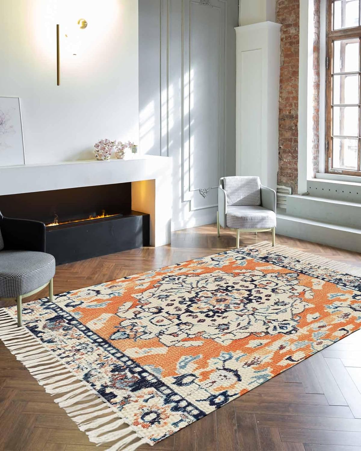 Upgrade Your Space with a Stylish Tassel Area RugAdd a touch of elegance and practicality to your home with our premium tassel area rugs. Designed for comfort and durability, these rugs are handwoven from a high-quality cotton-linen blend, offering a soft texture and natural look that seamlessly complements any decor style. Whether you’re enhancing a cozy corner or making a statement in a larger room.Elegant Tassel DesignThe hand-knotted tassels on each rug provide a classic and artisanal touch, elevating the aesthetic of your space. The tassels add subtle movement and texture, making the rug a standout piece in boho, farmhouse, minimalist, or modern interiors. These carefully crafted details bring warmth and character to your home, making the rug more than just a floor covering—it becomes a key part of your decor.Sizes for Every Space2’ x 3’: Perfect for small entryways, bathrooms, or kitchen sinks. This compact size adds charm while protecting high-traffic areas.2’ x 4’: Ideal for narrow spaces like hallways or small bedside areas. Its slim design fits seamlessly into tighter layouts.2’ x 5’: Great for entryways or as a functional runner in kitchens, offering just the right balance of coverage and style.2’ x 6’: Designed for longer hallways or as a stylish layer in front of double sinks or larger entryways.3’ x 5’: A versatile choice for small living rooms, bedrooms, or home offices, creating a cozy and inviting atmosphere.4’ x 6’: The perfect size for larger rooms, adding warmth to living areas, under coffee tables, or at the foot of a bed.Easy to MaintainDesigned for convenience, this rug is machine washable and easy to care for, maintaining its vibrant look even after multiple washes. Its lightweight construction allows for easy placement and rearrangement to refresh your space.