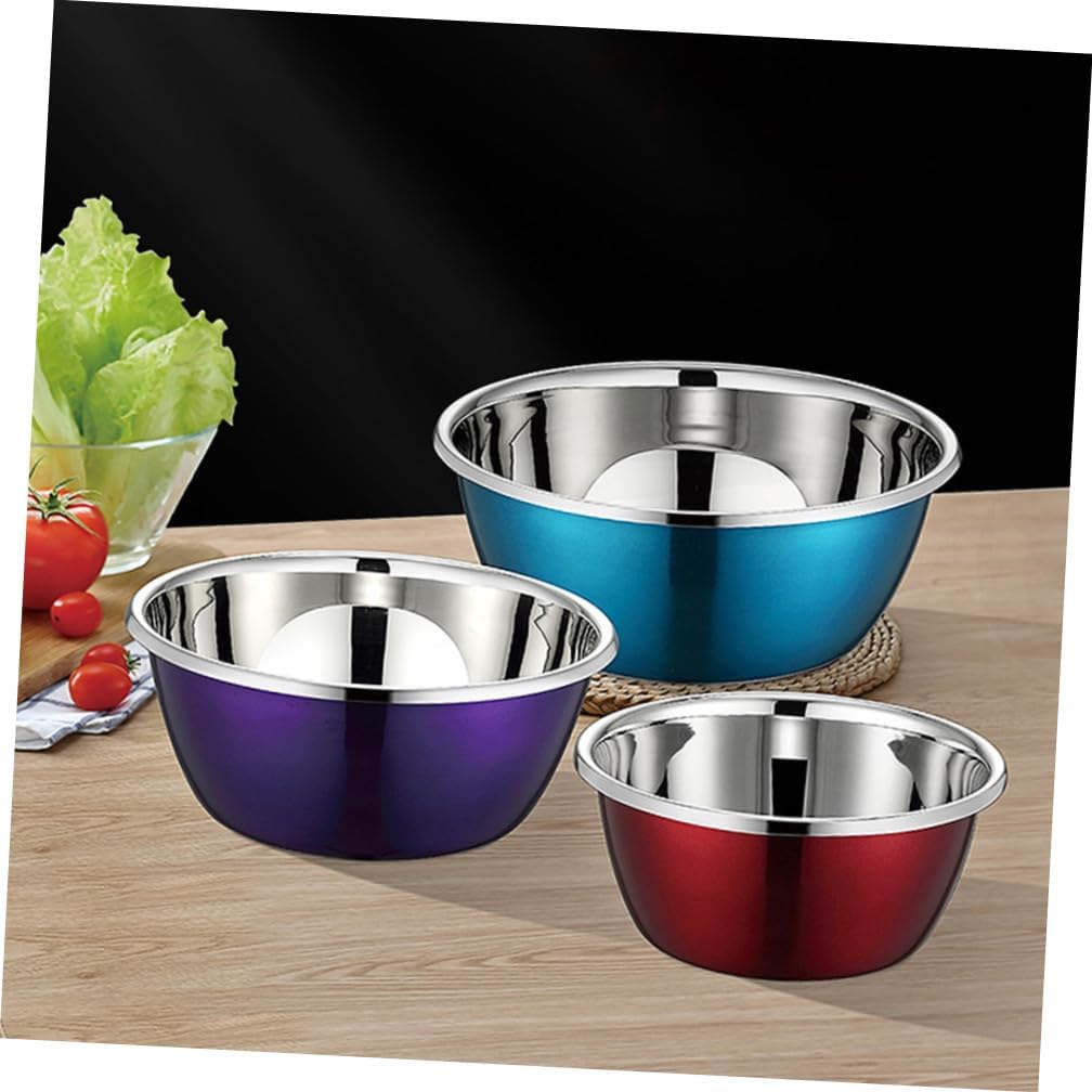 Package Include 3 x stainless steel mixing bowl sets Features -Product Info:Seasoning cylinder set -Size : About 24.00X24.00X10.00cm/9.44X9.44X3.93in. -Size L: About 28.00X28.00X11.00cm/11.00X11.00X4.32in. -Material: Stainless steel. -Size S: About 20.00X20.00X9.00cm/7.87X7.87X3.54in. - Widely applied in mixing food, storing food, displaying delicacies, making instant noodle, beating eggs, etc bowls for kitchen. - Easily mix your cake batters and cookie ingredients, marinate meat for the grill, or make tasty sauces and dressings inside the bowl food containers. - The stainless steel mixing bowl is creative and unique. A wonderful housewarming for your family and friends stainless bowl. - Nested storage when not in use, these bowls nest inside one another to save cabinet space cooking prep bowls. - Stainless steel material, firm, long serving life. Not easy to rust, age and deform, multi-functional and practical.Goods Descriptionstainless steel containers Stainless steel bowls for food storage, baking and cooking preparation.serving bowl for kitchen Wide, flat rim a sturdy grip for pouring, mixing, whisking, meal preparation, and serving! This multi-functional mixing bowl can be used as a housewarming to your friends, families,co-worker, and more