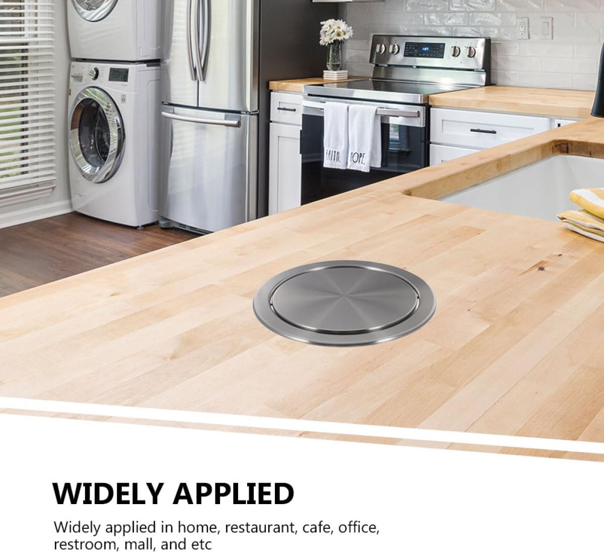 Package List 1 x recessed cover Characteristics -Color:As Shown 1 -Size(lid diameter):20.00X20.00X3.00cm/7.86X7.86X1.18in -Note:The diameter of the hole is 20.5-24.5cm/8.07-9.65in garbage can lid. -Product Info:Stainless steel trash can lid -Size(max outside diameter):25.20X25.20X3.30cm/9.90X9.90X1.30in -Material:403 stainless steel -Manufactured with stainless steel material, very and reliable for a long period. -Hidden design to save space. Practical and for you to use in kitchen or bathroom Flush Trash Can Cover. -The flipping design makes it more convenient to throw out trash, and it is not easy to make your hands dirty Lid For Waste Bin. -Smooth surface without burrs, will not hurt your hands while installation Garbage Can Flipping Cover. trash can lids -The trash can lid can be simply installed, it is time-saving and effortless Stainless Steel Flipping Cover.Goods DescriptionTrash Can Lid Especially suitable for residential areas, hotels, restaurants.Lid for Home Kitchen Garbage This is a necessary replacement stainless steel cover for environmental sanitation trash can.Flap Trash Lid Made of stainless steel material, the lid is lightweight and and easy to use