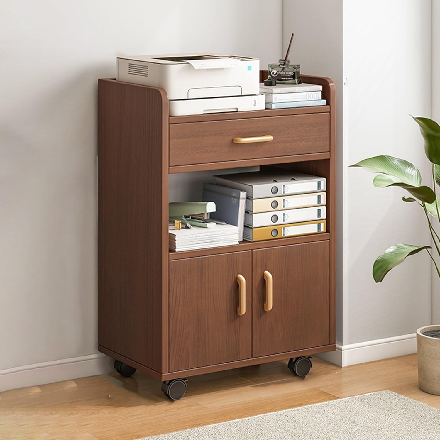 Storage Box Storage Cabinet,Portable Rolling Printer Stand for Home Office, Under Desk Filing Cabinet, Floor Standing Wooden Filing Cabinet, Vertical Filing Cabinets